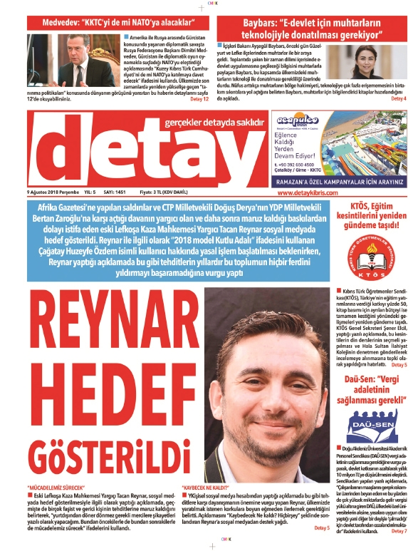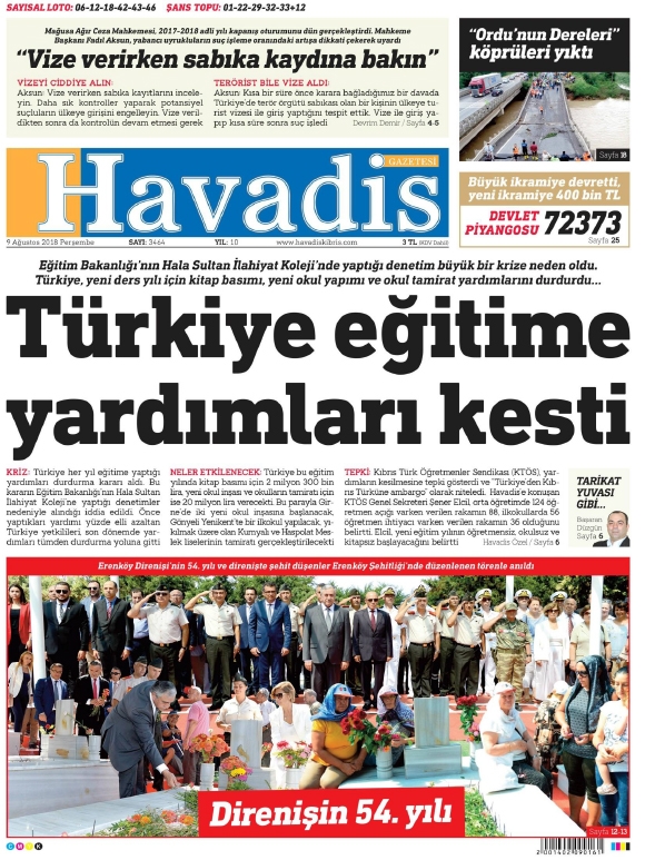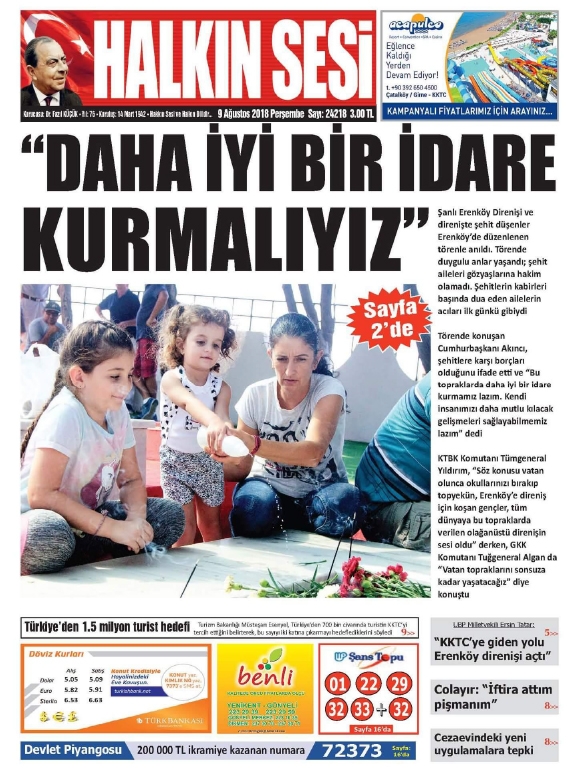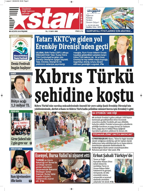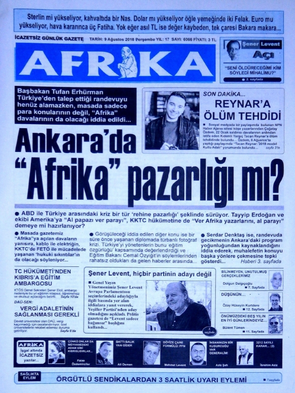 9 Ağustos 2018 Perşembe Gazete Manşetleri