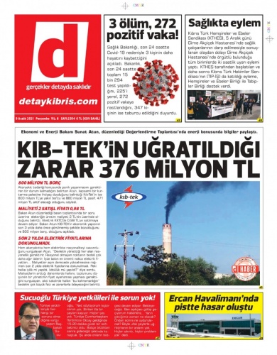 9 Aralık 2021 Perşembe Gazete Manşetleri