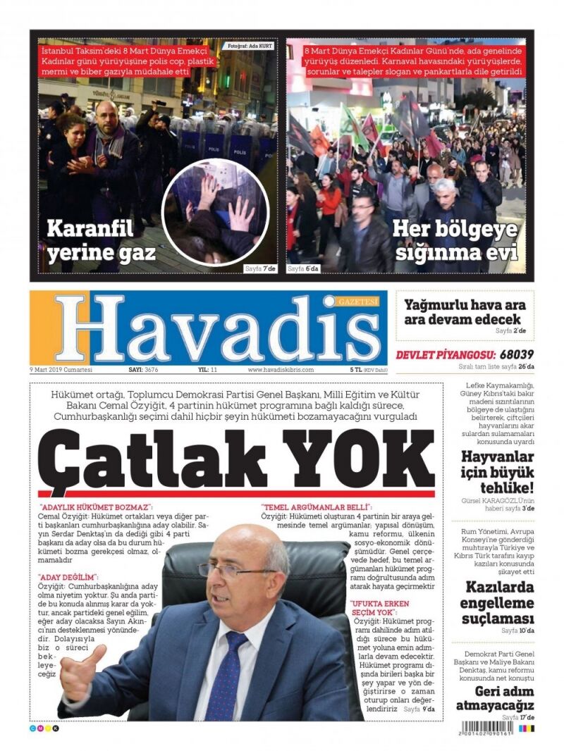 9 Mart 2019 Cumartesi Gazete Manşetleri