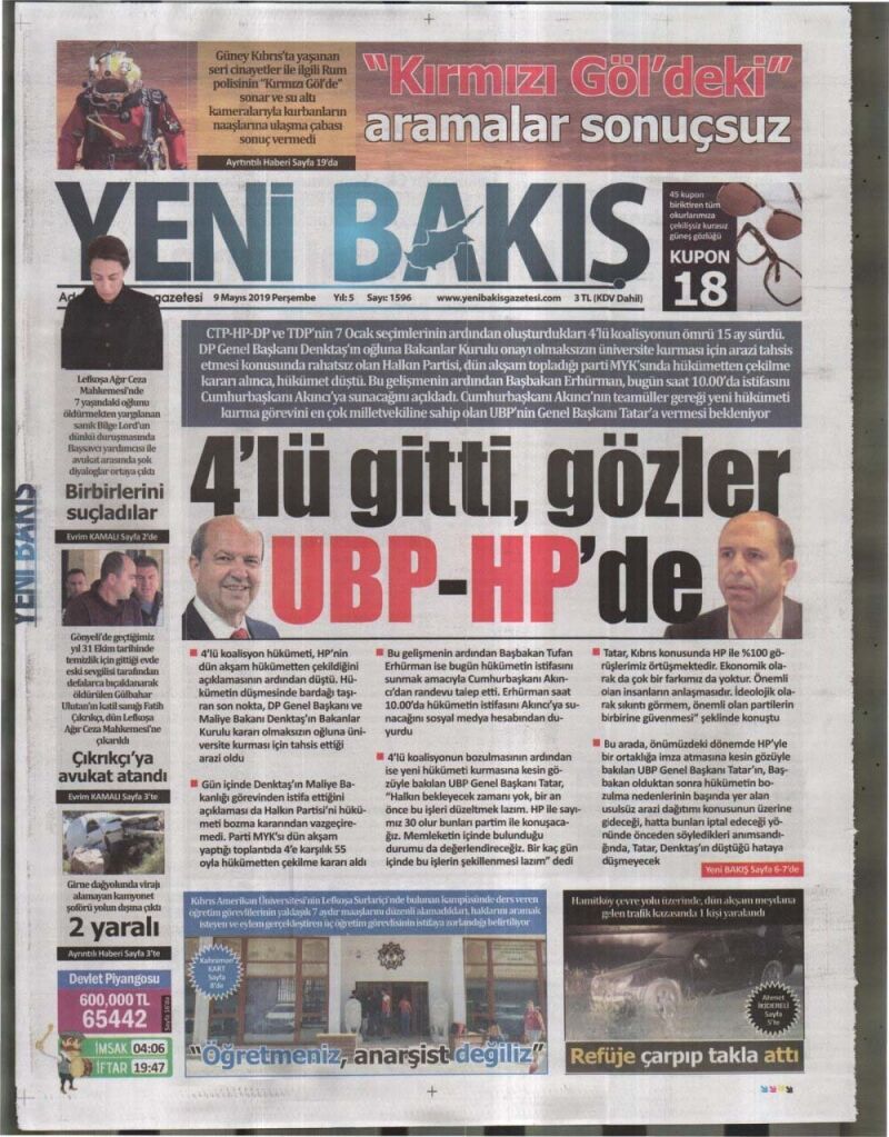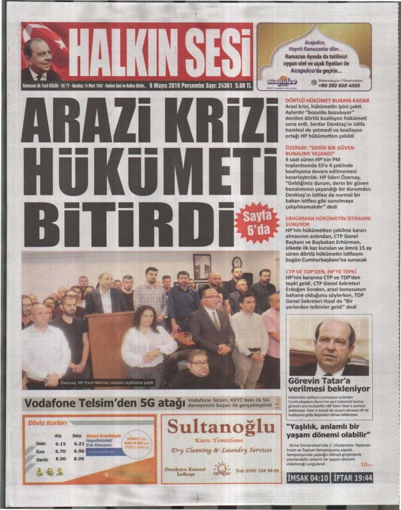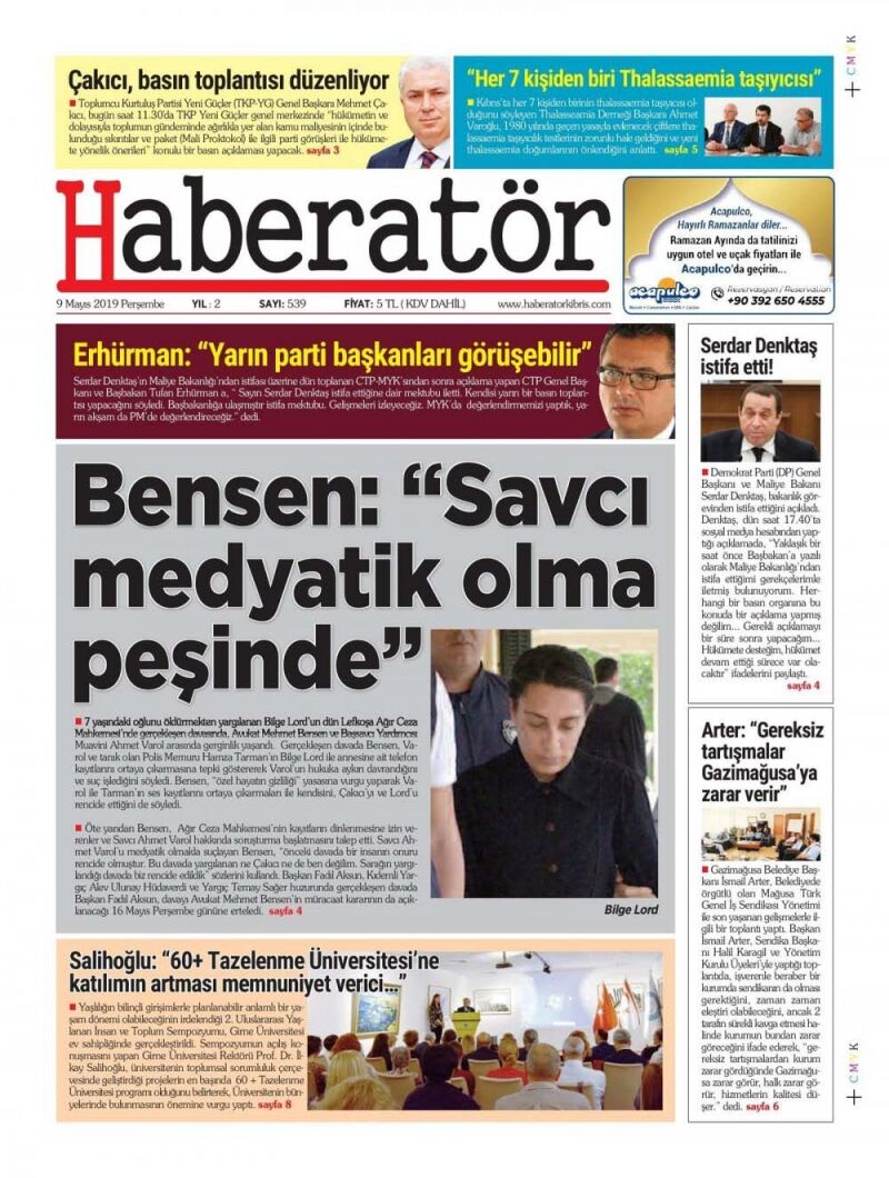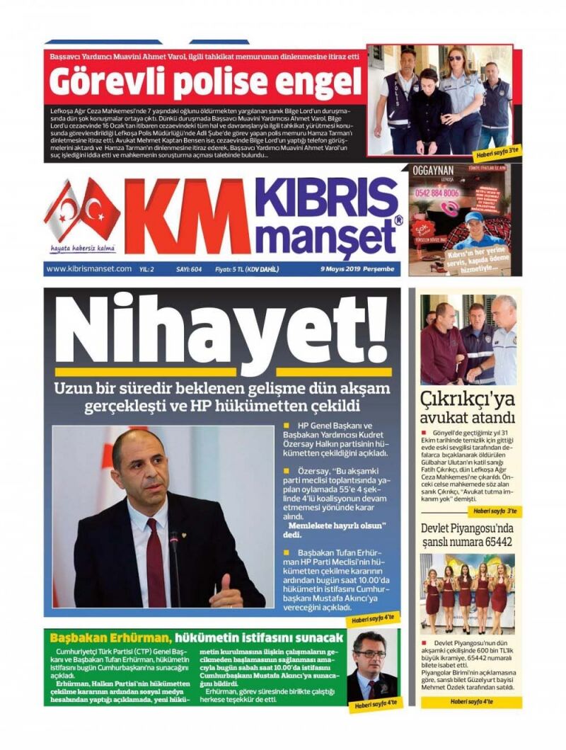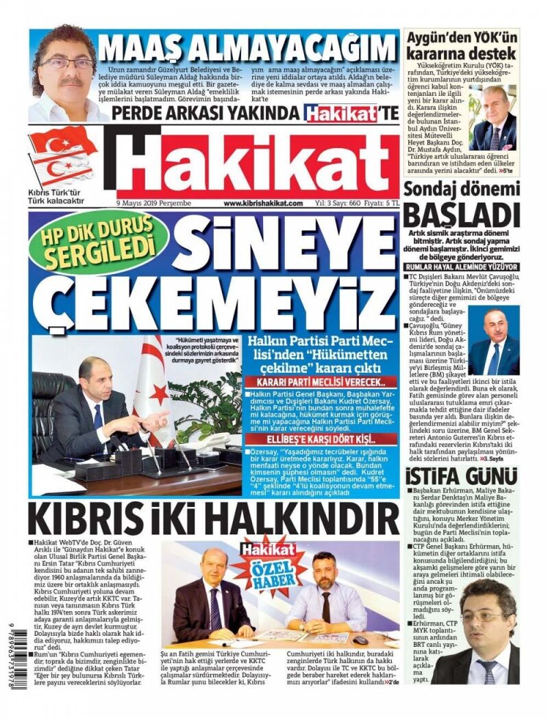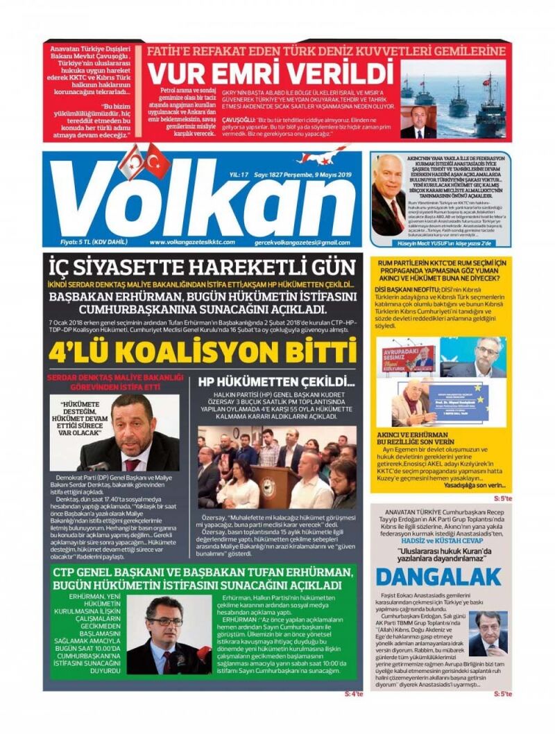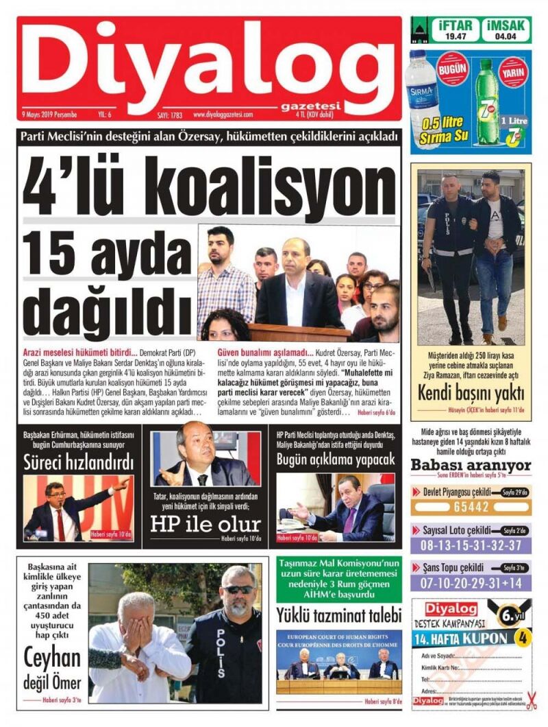 9 Mayıs 2019 Perşembe Gazete Manşetleri