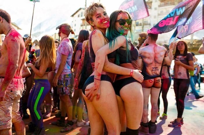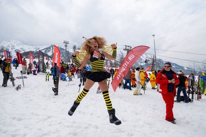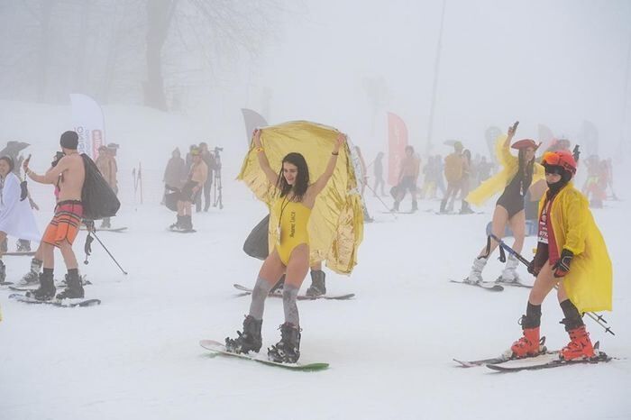 Bikini ve mayolarla snowboard ve kayak yaptılar!