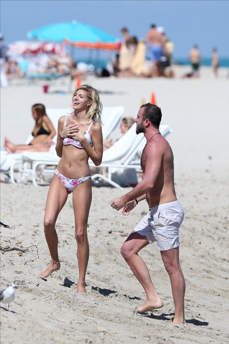 Çiçekli bikinisiyle plajda eğlendi