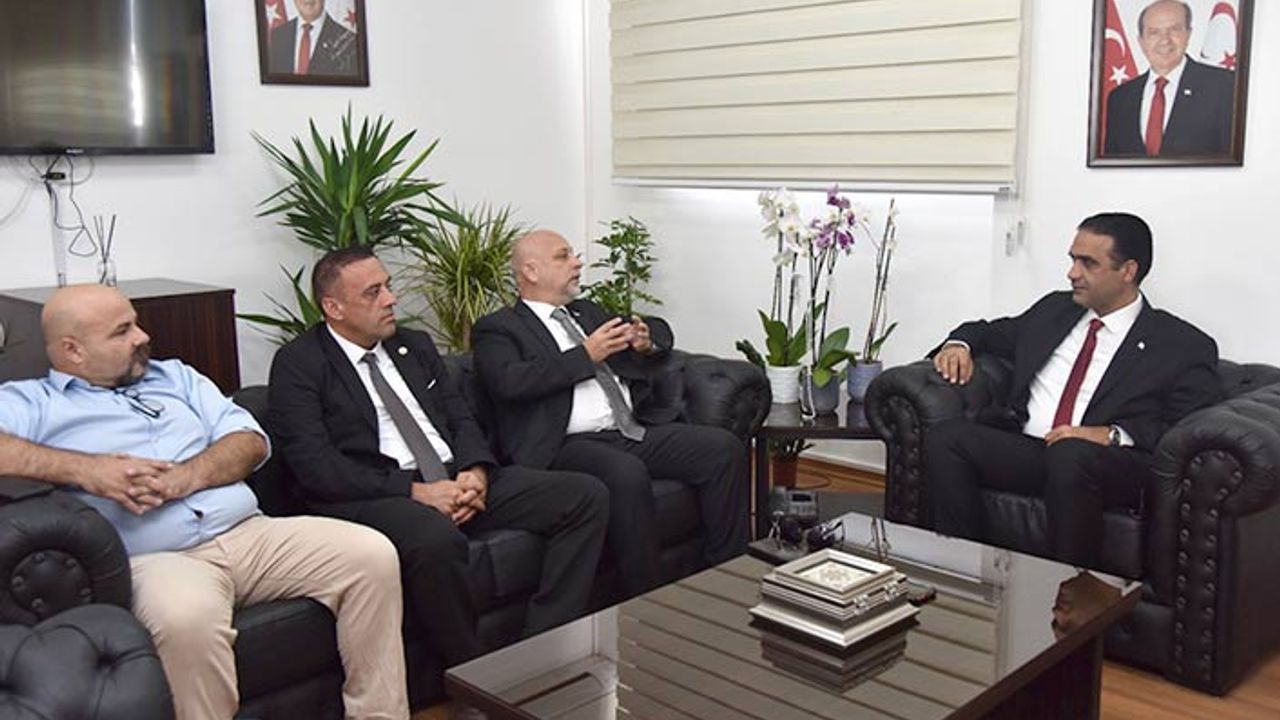 Çalışma ve Sosyal Güvenlik Bakanı Sadık Gardiyanoğlu, Kıbrıs Türk İş İnsanları Derneği (İŞAD) Başkanı Enver Mamülcü ile yönetim kurulu üyelerini kabul etti.