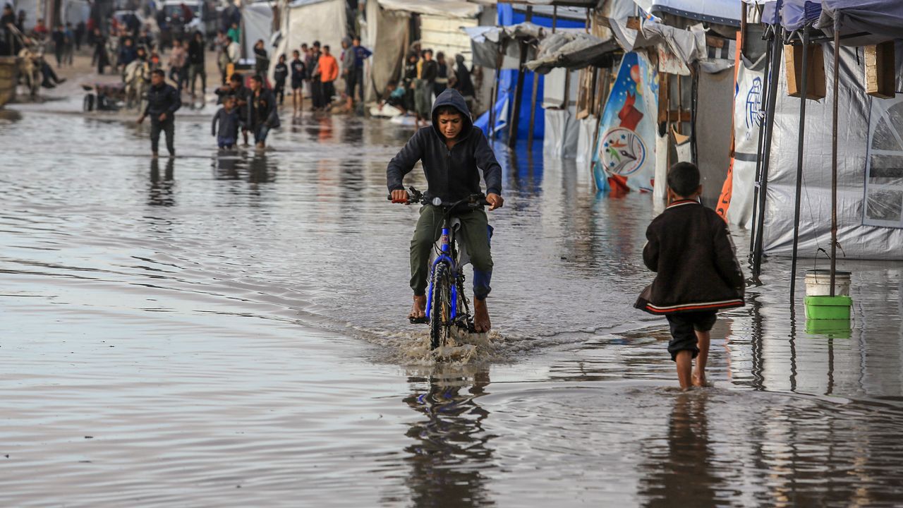 Kötü hava koşulları, son üç günde Gazze’nin farklı bölgelerinde binlerce çadırın suyla dolmasına, bir kısmının rüzgar nedeniyle uçmasına ve on binlerce kişinin yeniden açıkta kalmasına neden oldu. Yerinden edilen Filistinlilerin büyük çoğunluğunu kadınlar ve çocuklar oluşturuyor.
