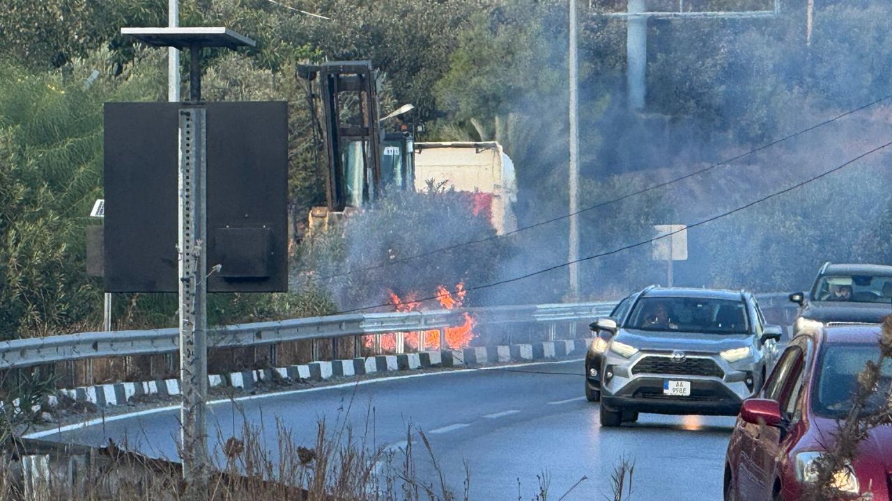 Yol ve trafik güvenliği açısından Boğazköy 'den Girne istikametine doğru seyreden sürücüler için trafik kontrollü olarak tek şeritten sağlanıyor. Orta refüj içerisinde meydana gelen yangına ise itfaiye ekipleri müdahale ediyor.