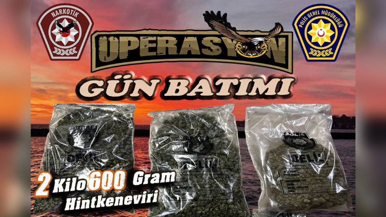 Gazimağusa’da Narkotik ve Kaçakçılığı Önleme Müdürlüğü ekipleri tarafından dün saat 16.00 sıralarında gerçekleştirilen “Gün Batımı Operasyonu” kapsamında, R.E.J.(K-26)’nin kalmakta olduğu ikametgahta yapılan aramada; tasarrufunda toplam 2 kilo 600 gram ağırlığında hintkeneviri türü uyuşturucu olduğuna inanılan madde ve üzerinde uyuşturucu madde kalıntısı olduğuna inanılan hassas terazi tespit edilerek emare olarak alındı.