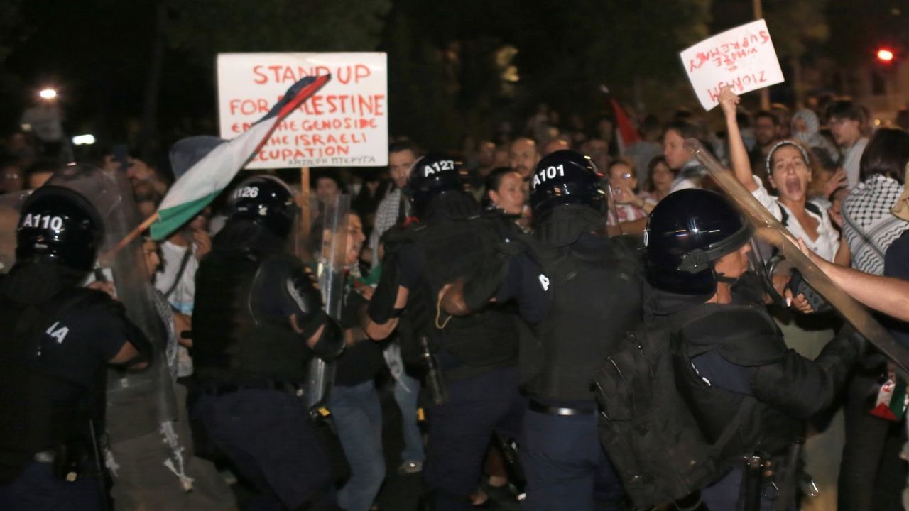 Rum basınında yer alan haberlere göre, Gazze konusunda hükümetten daha güçlü resmi bir müdahale talep etmeyi amaçlayan protestoculara çevik kuvvetin müdahalesi çatışmaya dönüştü.