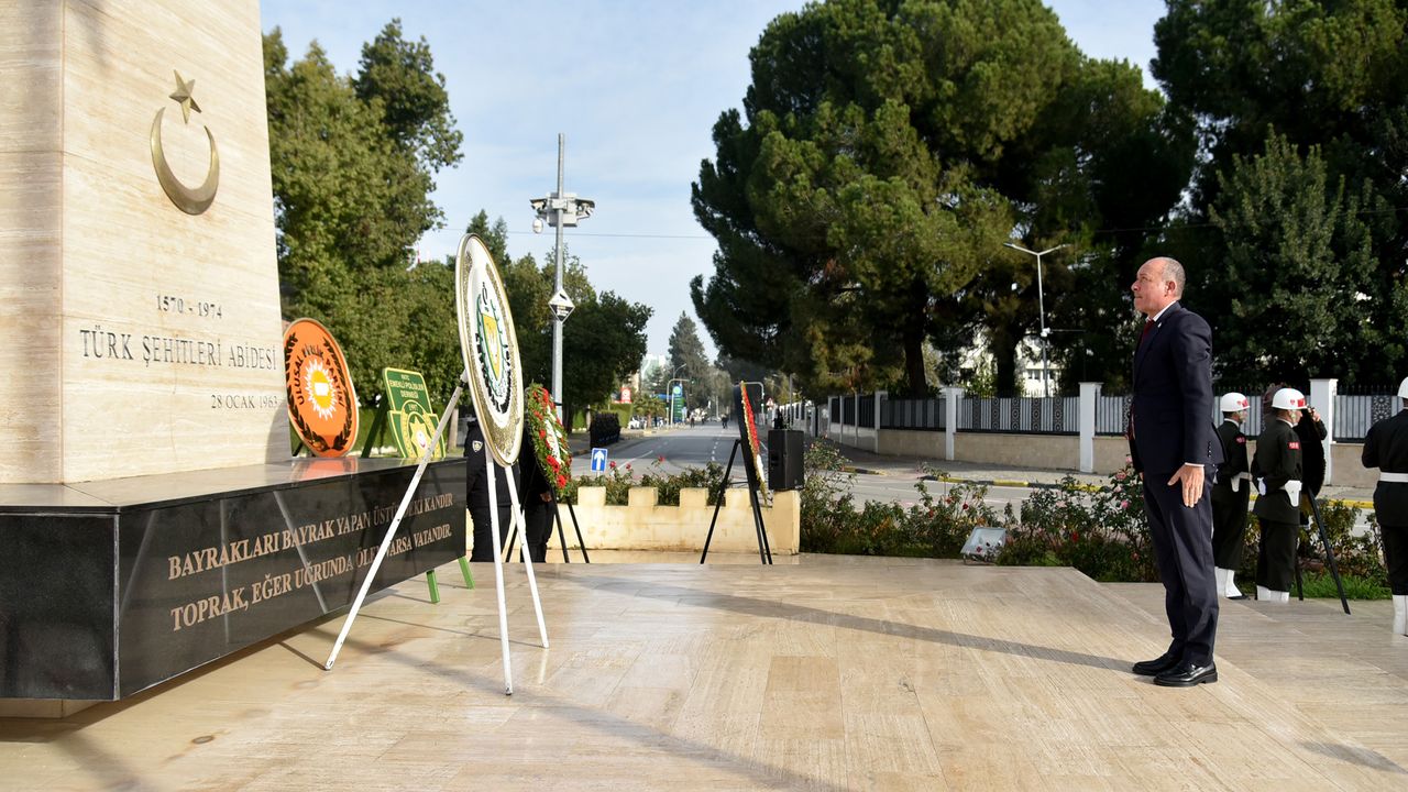 Şehitler Anıtı'ndaki törende, saygı duruşu ve saygı atışının ardından bayraklar İstiklal Marşı eşliğinde göndere çekildi. Günün anlam ve önemini belirten konuşmayı ise Şehit Aileleri ve Malul Gaziler Derneği Başkanı Gürsel Benan yaptı.