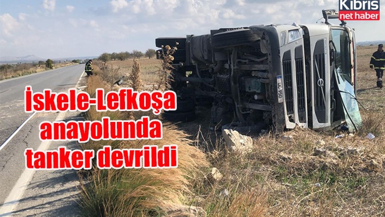 İskele-Lefkoşa anayolunda akaryakıt tankeri devrildi, kazada yaralanan olmadı.