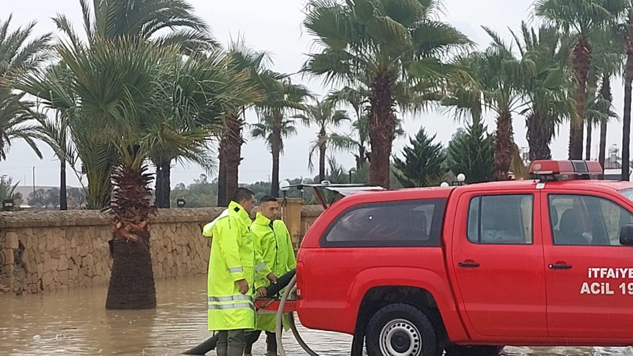 Girne İtfaiye Şubesi ise; 3 araç ve 10 personel ile toplam 7 noktada sel baskınlarına müdahalede etti.