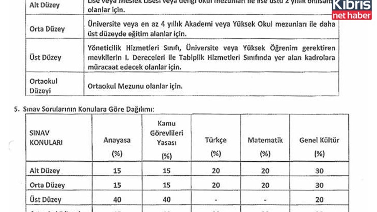 Sınav Kağıtlarının Değerlendirilmesi, Başarı Puanı ve Sonuçların Açıklanması: Sınav kağıtlarının değerlendirilmesi, Kamu Hizmeti Komisyonu Sınav İşleri Müdürlüğü'nde, optik okuyucu ve bilgisayarla yapılacaktır. Bütün düzeylerde başarı için 100 üzerinden en az 60 puan alınması gerekmektedir. Sonuçlar, sınavın tamamlanmasından sonraki ilk saatlerde, Kamu Hizmeti Komisyonu'nun web sitesinden yayınlanacaktır.