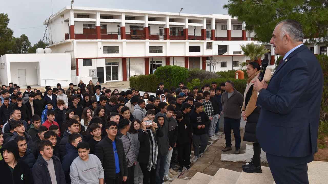 Milli Eğitim Bakanı Nazım Çavuşoğlu da Gazimağusa’daki Dr. Fazıl Küçük Endüstri Meslek Lisesi’ndeki karne dağıtım törenine katılarak öğrencilerin heyecanını paylaştı.