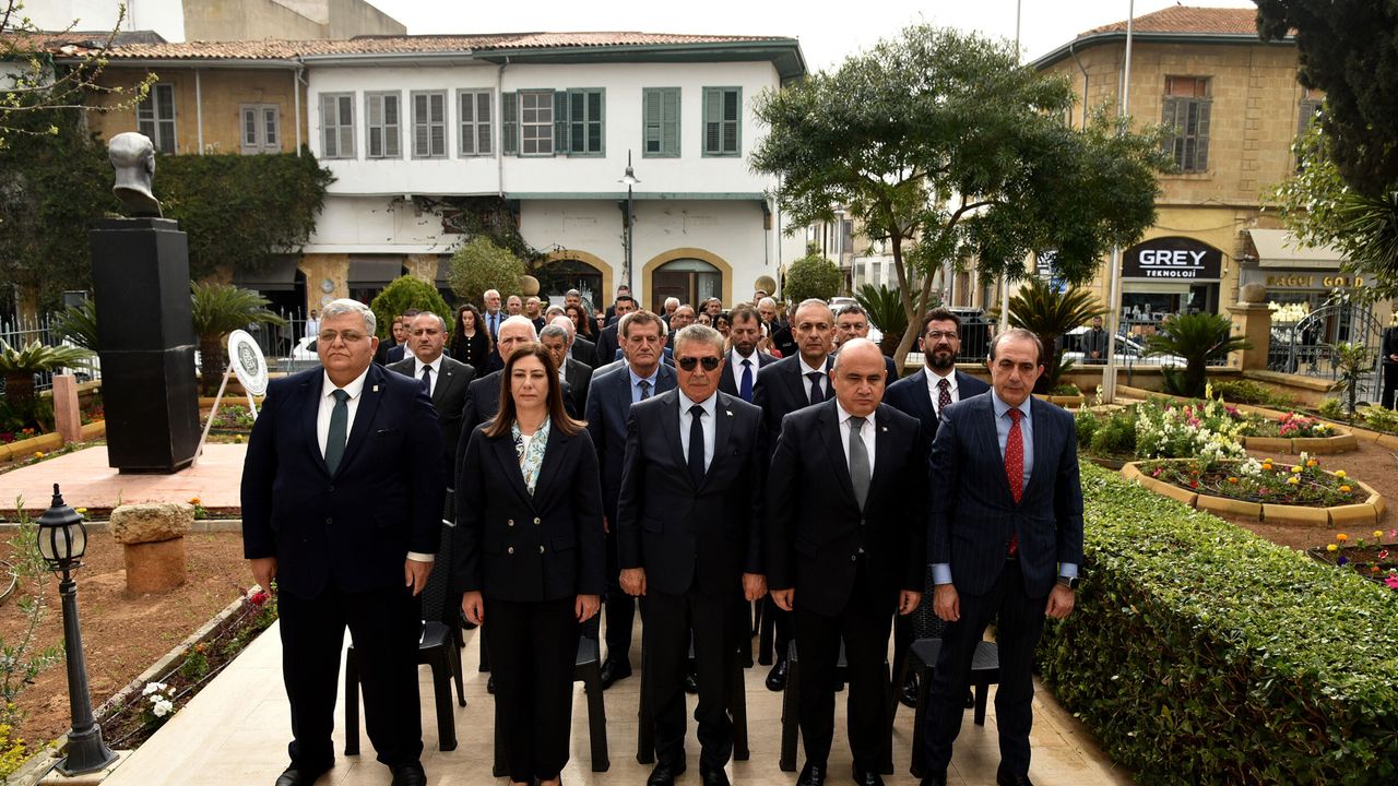 Tören, Ulu Önder Mustafa Kemal Atatürk, Özgürlük Mücadelesi Lideri Dr. Fazıl Küçük, Kurucu Cumhurbaşkanı Rauf Raif Denktaş, 6 Şubat’ta kaybedilen Şampiyon Melekler ve şehitlerin anısına bir dakikalık saygı duruşu ve ardından İstiklal Marşı’nın okunmasıyla başladı.