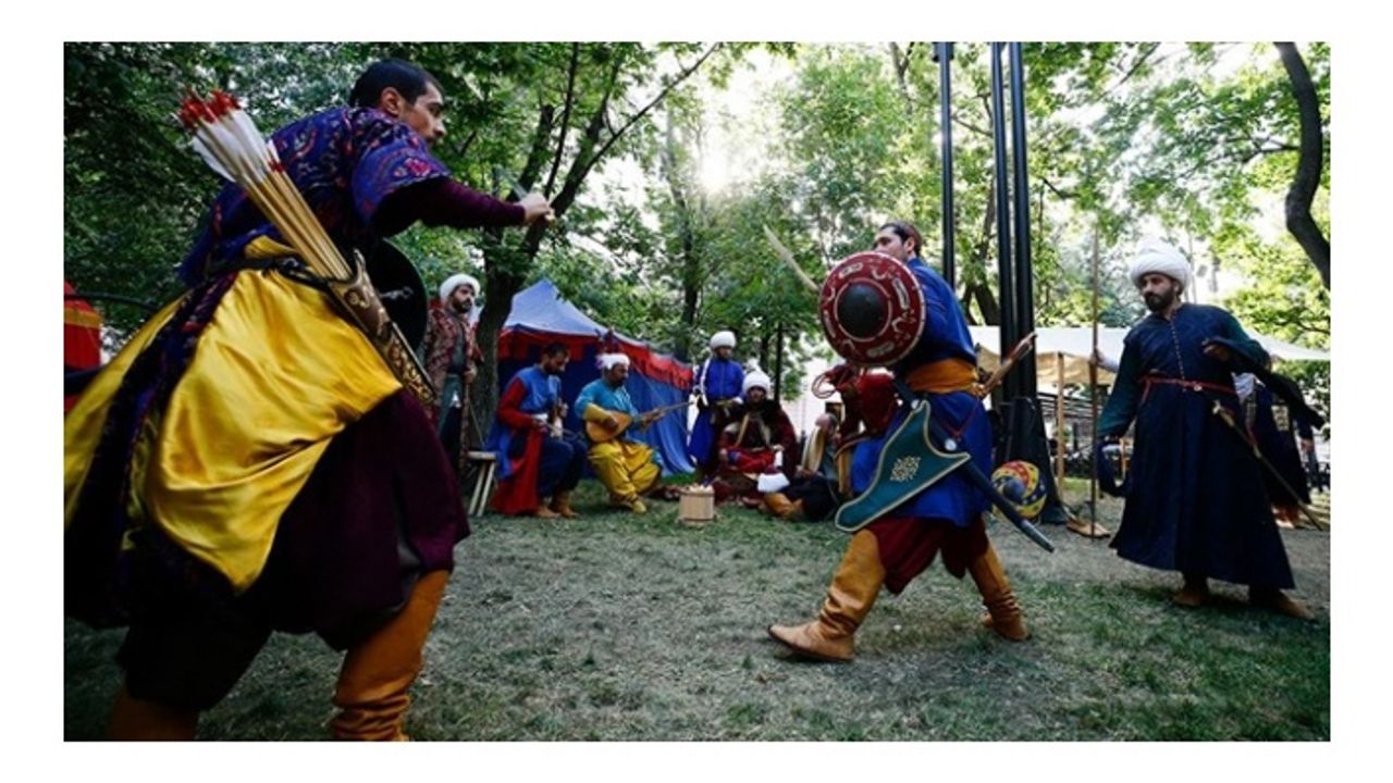 “Ordugah Tarihi Canlandırma Takımı” grubu, sembolik olarak kurulan karargahtaki otağda Osmanlı askeri hayatı ve savaş tekniklerinden örnekler canlandırdı.