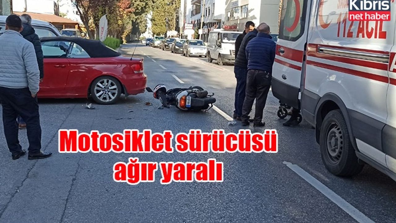 Kıbrıs Türk Ticaret Odası'nın karşısındaki sokakağa girmeye çalışan BMW marka bir araca motosiklet çarptı. Kazada motosiklet sürücüsü olay yerine gelen ambulansla Lefkoşa Dr. Bruhan Nalbantoğlu devlet hastanesine kaldırıldı.