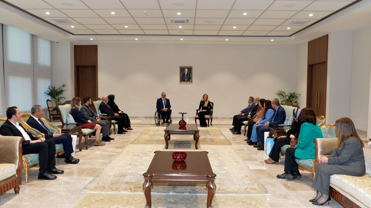 Cumhurbaşkanlığı’ndan yapılan açıklamaya göre, Kıbrıs Türk Ortopedik Özürlüler Derneği Başkanı Dr. Günay Kibrit başkanlığındaki heyette; Manisa Celal Bayar Üniversitesi Rektörü Prof. Dr. Rana Kibar, YDÜ Rektörü Prof. Dr. Tamer Şanlıdağ, Manisa Celal Bayar Üniversitesi Rektör Yardımcısı Prof. Dr. Ahmet Çetin, KKTC Engelsiz Bilişim Platformu Koordinatörü Prof. Dr. Zehra Altınay, KKTC Engelsiz Bilişim Platformu Koordinatörü Prof. Dr. Fahriye Altınay, Girne Üniversitesi Rektör Yardımcısı Prof. Dr. Gökmen Dağlı, Uluslararası Kıbrıs Üniversitesi, Tarım Bilimleri ve Teknolojileri Fakültesi Dekanı Prof. Dr. Mustafa Erayman, Türkiye Engelsiz Bilişim Platformu Koordinatörü, Celal Bayar Üniversitesi Ögretim Üyesi Dr. Mustafa Özhan Kalaç, KKTC Engelliler Spor Federasyonu Başkanı Ahmet Akdeniz ve YDÜ Eğitim Fakültesi Dekanı Prof. Dr. Umut Akçil yer aldı.