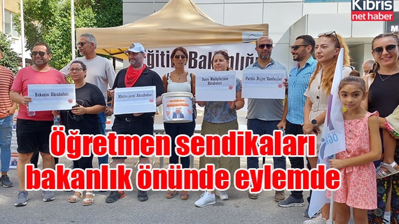 Milli Eğitim Bakanlığı Yüksek Danışma Kurulu'nun "ek bütünleme sınavı yapılması ve ortaokullarda akademik sınıfların kaldırılması” konularını ele aldığı belirtilen toplantısı sırasında iki öğretmen sendikası, sorunları protesto etmek amacıyla Bakanlık binası önünde bir araya geldi.