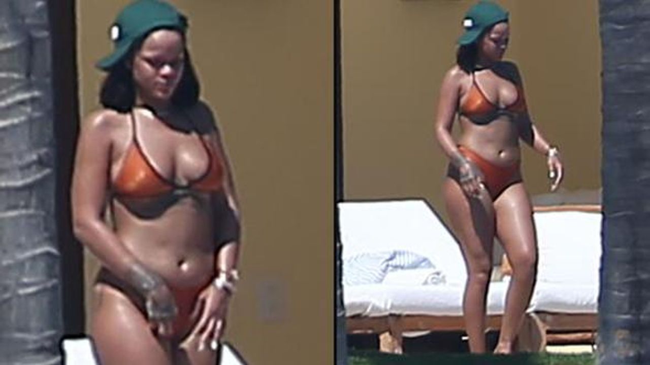 Bugüne kadar her zaman kusursuz ve orantılı bir fiziksel görüntüye sahip olan Rihanna, bu kez biraz göbek yapmış, kalçaları da biraz daha irileşmişti. Hatta öyle ki bikinisinin üst parçası kendisine küçük gelmiş gibi görünüyordu.