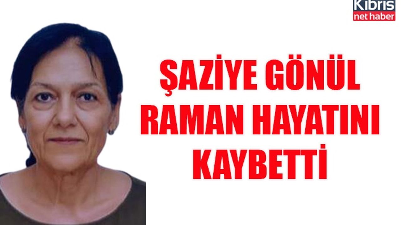 Gönyeli'de sakin Şaziye Gönül Raman sabah saatlerinde yaşamını yitirdi. Cenazesi (9-5-2022) Pazartesi bugün saat 14.00’te Gönyeli’de kılınacak olan cenaze namazından sonra Gönyeli Kabristanlığı’na defnedilecek. Yaslı ailesine ve sevenlerine başsağlığı dileriz.