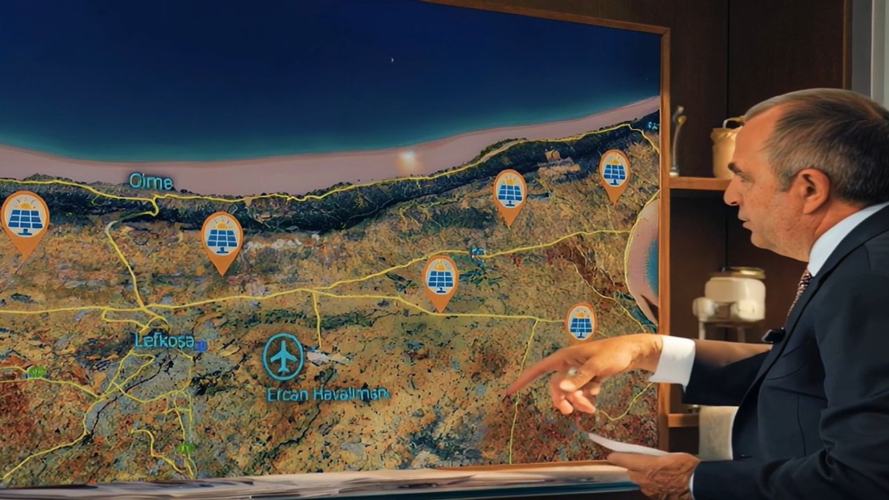 Görselde, Kuzey Kıbrıs’a teknoloji ve doğayı da kullanarak yapılabilecek yenilikler ile Kuzey Kıbrıs’ta yeni bir çağın başlatılabileceği yönünde yeni projeler gösterilirken, Kuzey Kıbrıs’ta berrak sular ve verimli topraklar ile Kıbrıs’ın parlak geleceğinin nasıl yaratılabileceği anlatıldı.