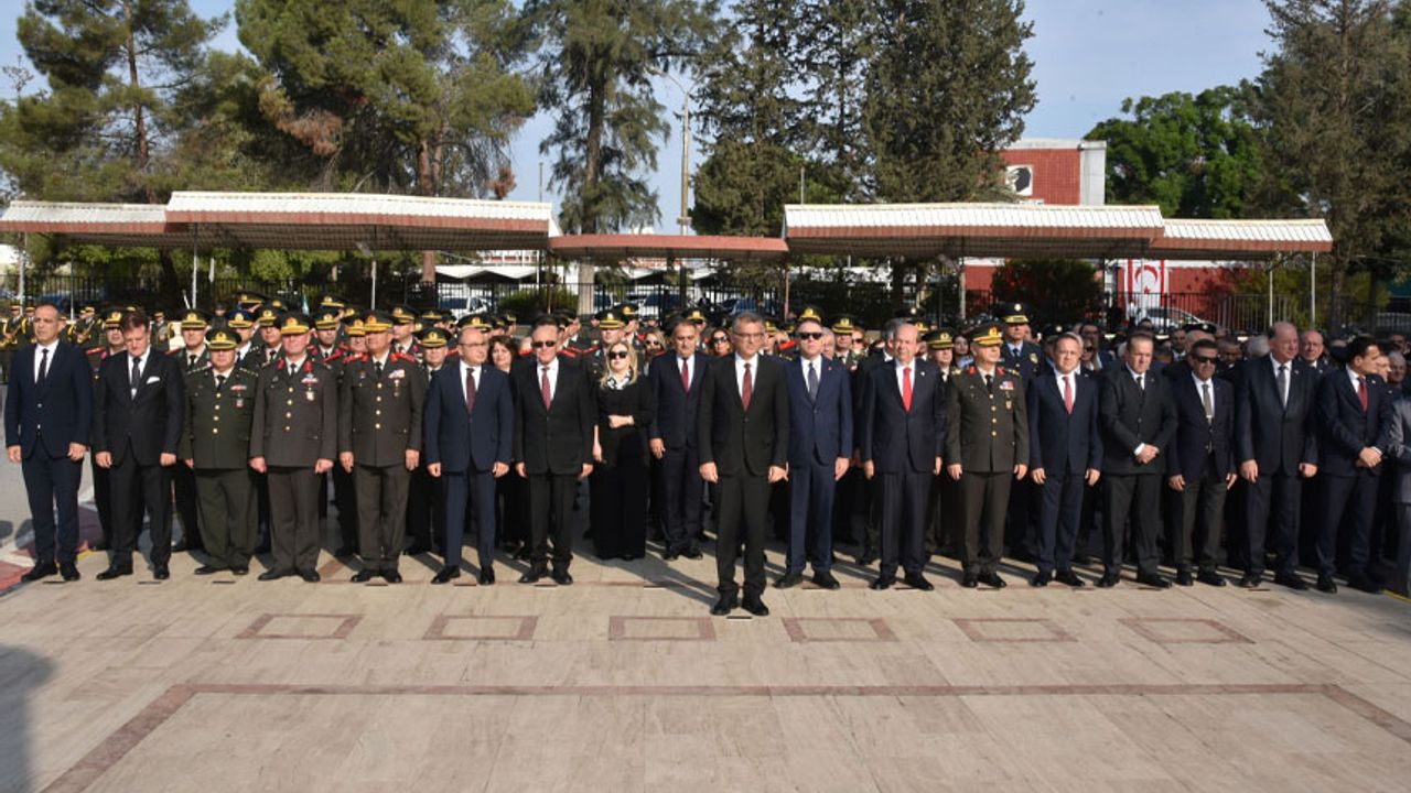 Lefkoşa’daki ilk tören Atatürk Anıtı önünde yapıldı. Törende; Cumhurbaşkanı Tufan Erhürman, Cumhuriyet Meclisi Başkanı Ziya Öztürkler, Başbakan Ünal Üstel, Yüksek Mahkeme Başkanı Bertan Özerdağ, İkinci Cumhurbaşkanı Mehmet Ali Talat, Beşinci Cumhurbaşkanı Ersin Tatar, Türkiye Cumhuriyeti Lefkoşa Büyükelçisi Ali Murat Başçeri, Kıbrıs Türk Barış Kuvvetleri Komutanı (KTBK) Korgeneral Sebahattin Kılınç, Güvenlik Kuvvetleri Komutanı (GKK) Tümgeneral İlker Görgülü, ana muhalefet Cumhuriyetçi Türk Partisi (CTP) Genel Başkan Vekili Erkut Şahali, 28’inci Tümen Komutanı Tümgeneral İlker Ertuğrul ile bazı bakanlar, milletvekilleri, kurum, kuruluş ve dernek temsilcileri, askeri erkan ve öğrenciler yer aldı.