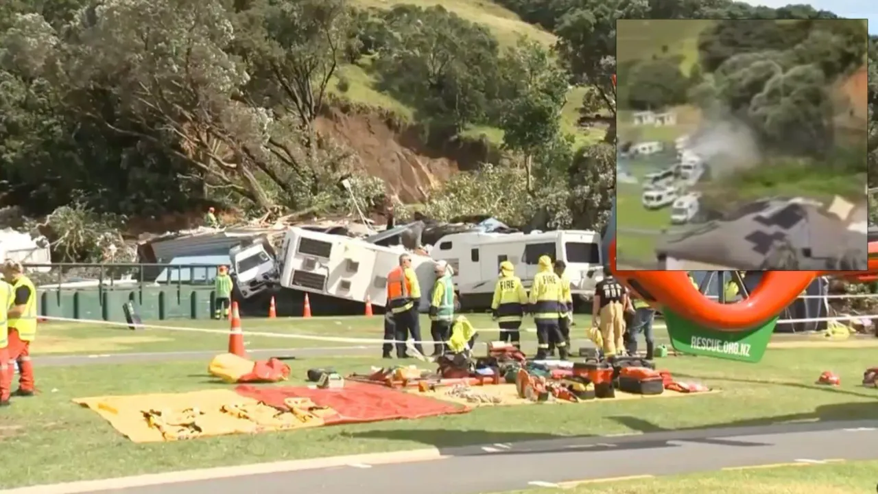 Yerel saatle perşembe sabahı erken saatlerde meydana gelen olayda, yoğun yağışın ardından kopan toprak ve kaya kütlesi, Beachside Holiday Park adlı turistik kamp alanını vurdu.