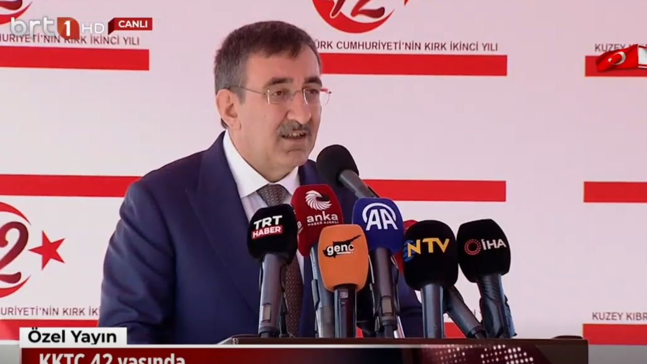 Türkiye Cumhuriyeti Cumhurbaşkanı Yardımcısı Cevdet Yılmaz, KKTC’nin 42’nci kuruluş yıl dönümü dolayısıyla Lefkoşa Dr. Fazıl Küçük Bulvarı’nda düzenlenen törende bir konuşma yaparak, Kuzey Kıbrıs Türk Cumhuriyeti’ni desteklemeye devam edeceklerini vurguladı.
